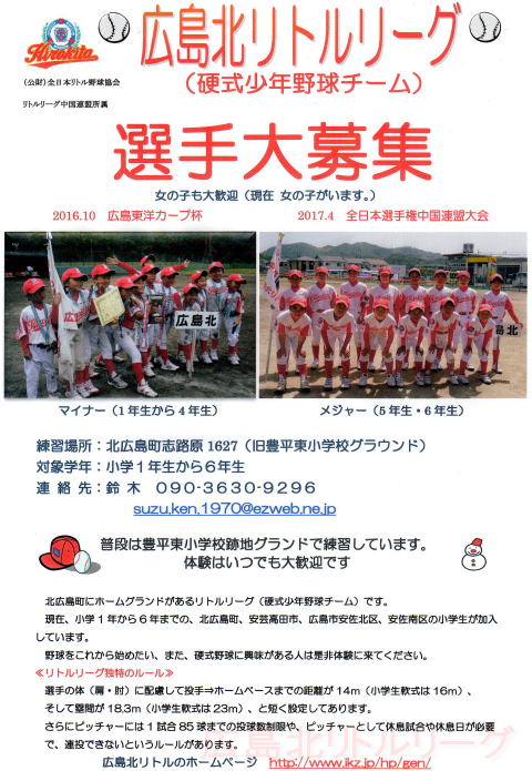 ようこそ広島北リトルリーグのホームページへ